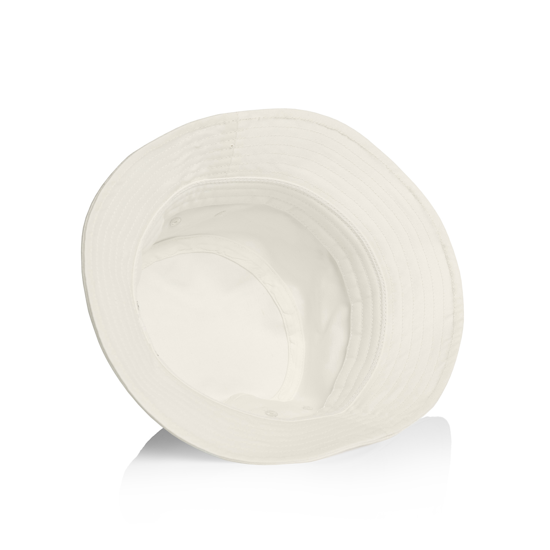 Reinforced large brim with stitching detail, side eyelets, self-fabric chin strap, plastic adjustable toggle.