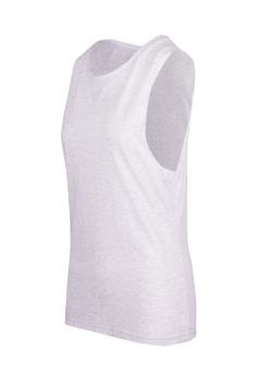 Sleeveless tank, raw armhole edges, stone wash finish with a worn look